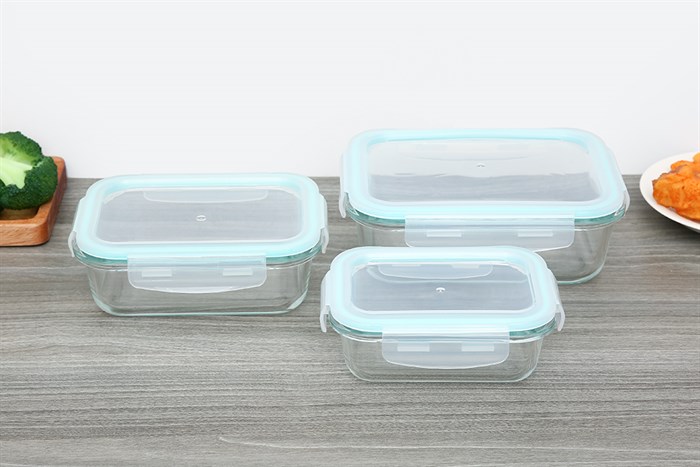 Quy cách: 3 hộp thủy tinh hình chữ nhật nhiều dung tích