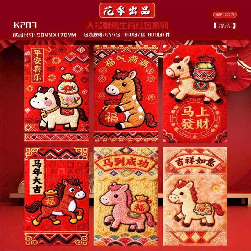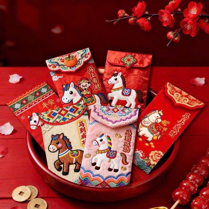 Set 60 bao lì xì Ngựa thổ cẩm giả vải gấm mang phong cách độc đáo, kết hợp họa tiết thổ cẩm truyền thống với hình ngựa may mắn, tượng trưng cho tài lộc, thành công và thịnh vượng trong năm mới. Thiết kế sang trọng, màu sắc nổi bật, thích hợp dùng lì xì cho người thân, bạn bè hoặc trang trí dịp Tết. 🧧✨