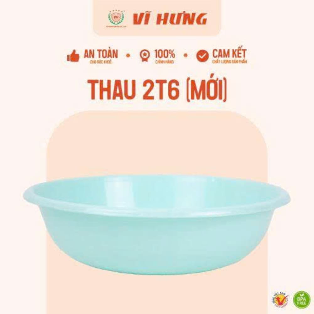 Thau nhựa tròn sâu Vĩ Hưng 2T6 6616 được làm từ nhựa PP cao cấp, thiết kế lòng sâu rộng và thành dày chắc chắn, phù hợp sử dụng trong sinh hoạt hằng ngày như rửa thực phẩm, giặt giũ hoặc đựng đồ dùng. Kiểu dáng bền đẹp, tiện lợi cho gia đình và quán ăn.