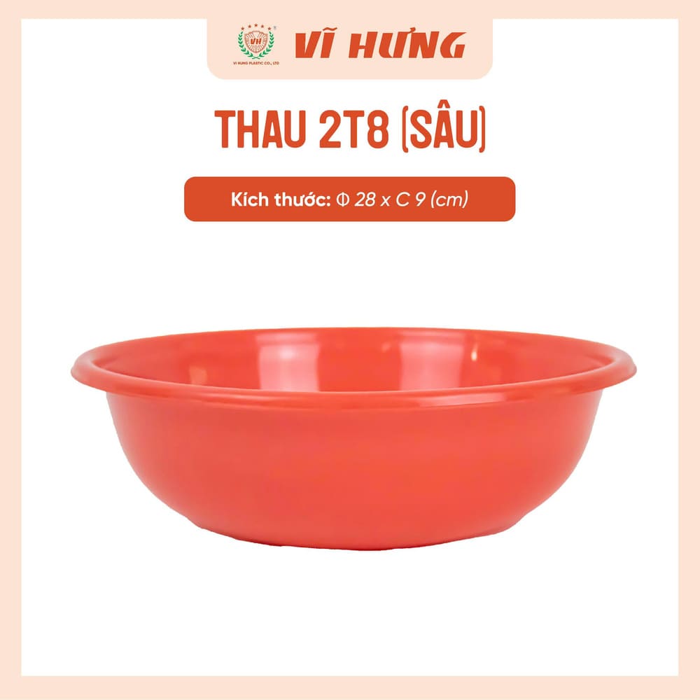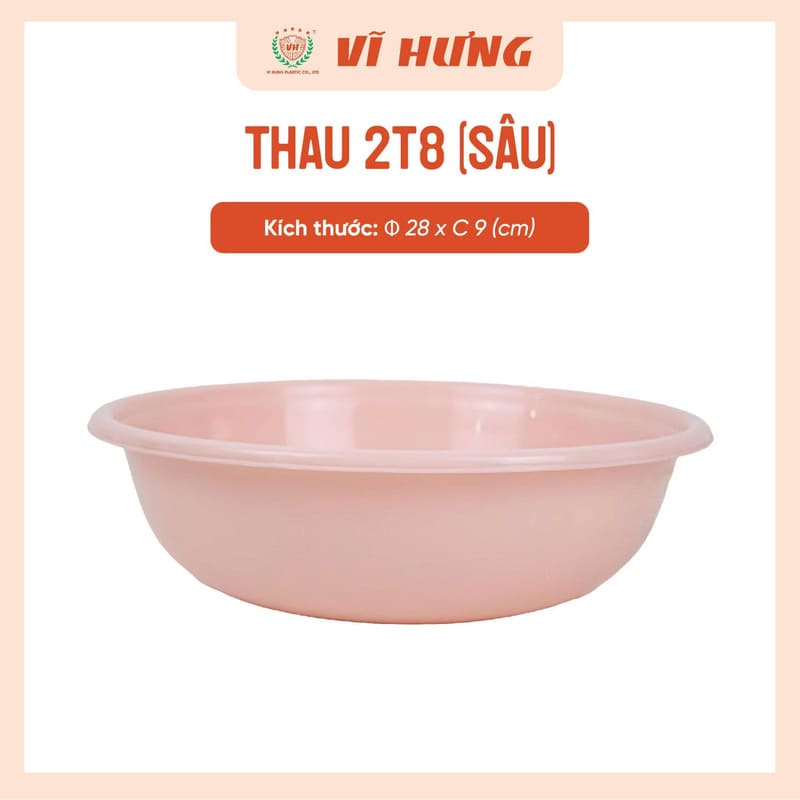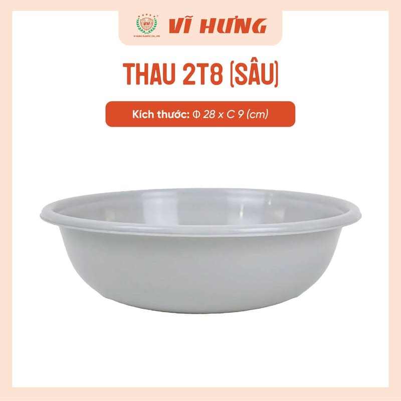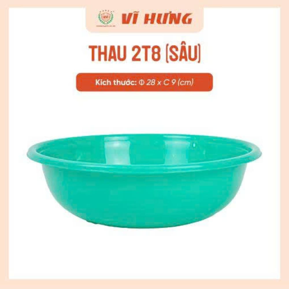 Thau nhựa tròn sâu Vĩ Hưng 2T8 6620 được làm từ nhựa PP cao cấp, thiết kế lòng sâu rộng và thành dày chắc chắn, phù hợp sử dụng trong sinh hoạt hằng ngày như rửa thực phẩm, giặt giũ hoặc đựng đồ. Kiểu dáng bền đẹp, tiện lợi cho gia đình và quán ăn.