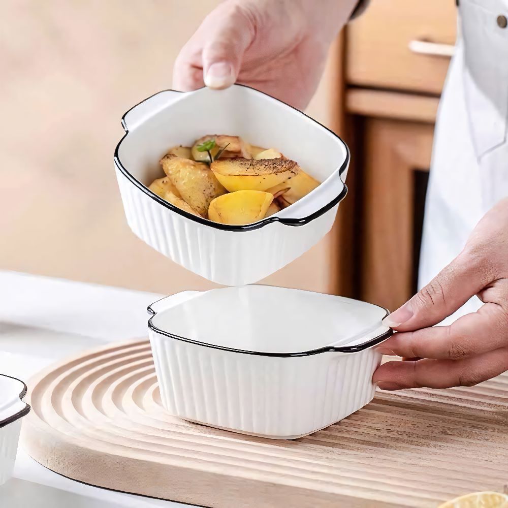 Tai cầm tiện lợi: Hai bên thố được thiết kế với tai cầm nhỏ gọn nhưng chắc chắn, giúp người dùng dễ dàng di chuyển thố ngay cả khi đựng thực phẩm nóng hoặc nặng. Chi tiết này không chỉ tăng tính tiện dụng mà còn góp phần hoàn thiện vẻ đẹp thẩm mỹ cho sản phẩm.