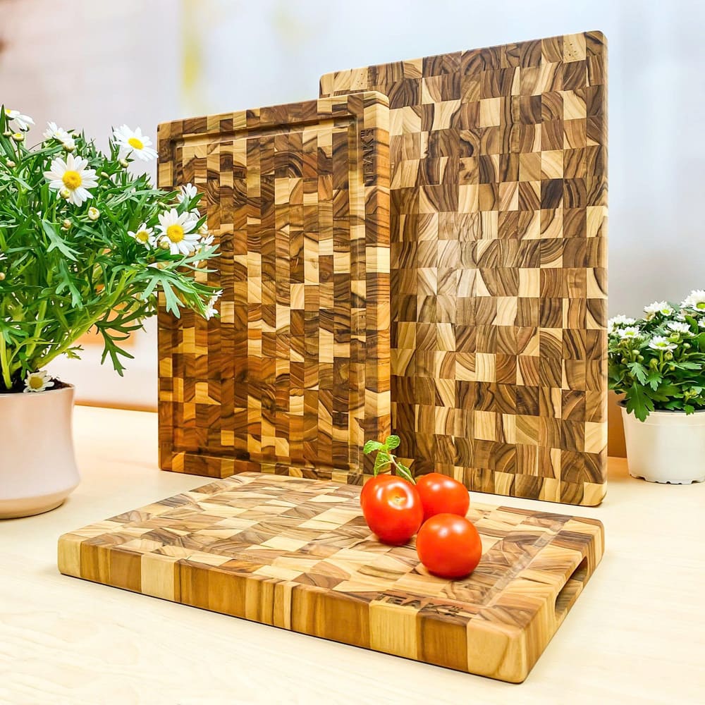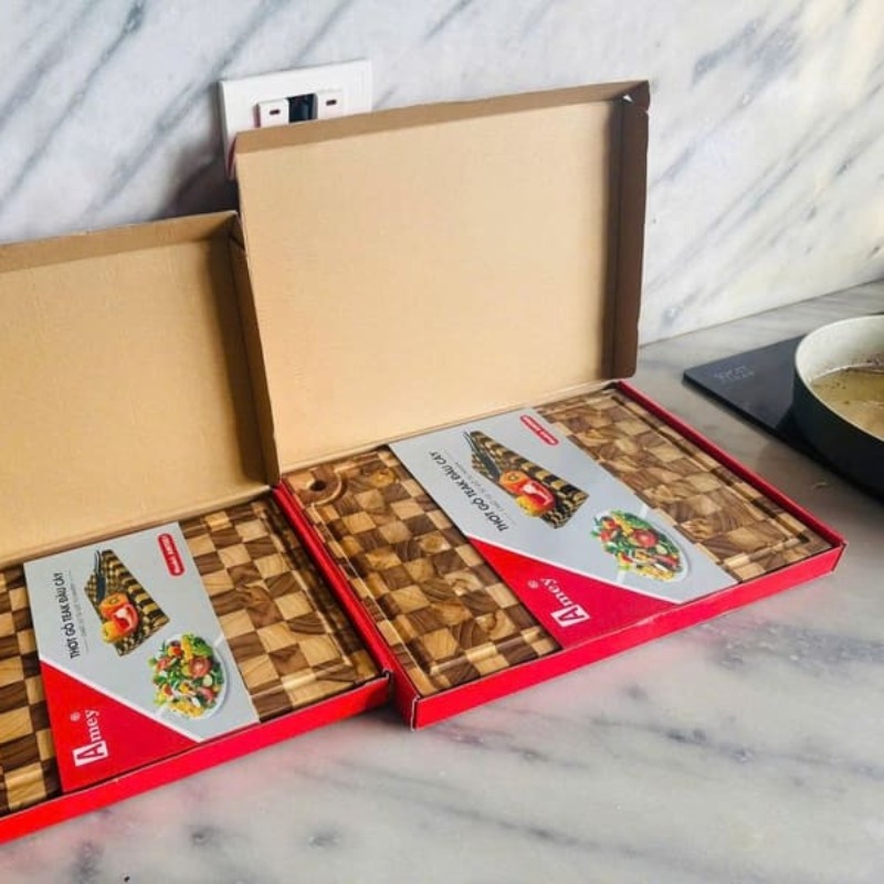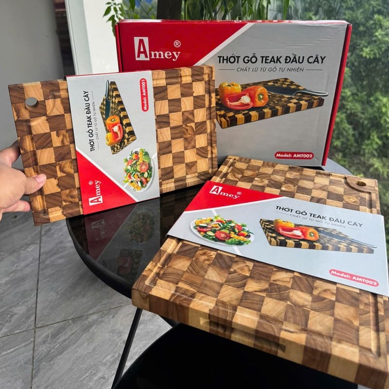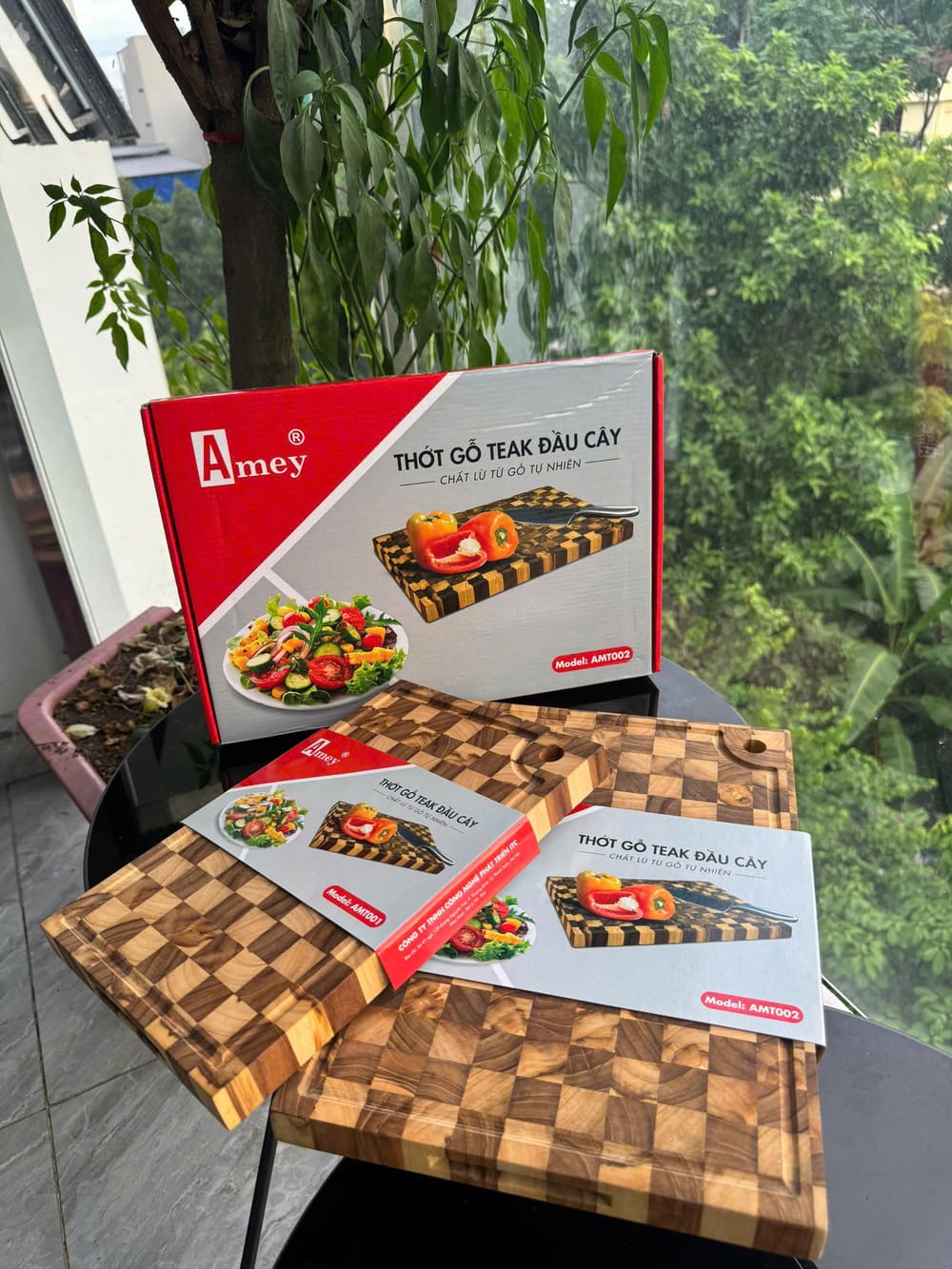 Mang lại trải nghiệm nấu nướng chuyên nghiệp với Thớt gỗ Teak đầu cây chữ nhật Amey AMT001. Chất liệu gỗ Teak tự nhiên cao cấp, bền chắc, ít thấm nước và kháng khuẩn tốt, an toàn cho sức khỏe. Thiết kế đầu cây đẹp mắt, vân gỗ sang trọng, vừa là công cụ nhà bếp vừa như một món décor tinh tế.
