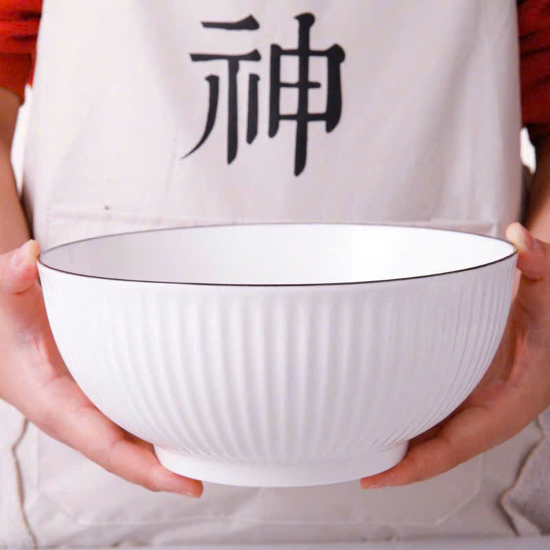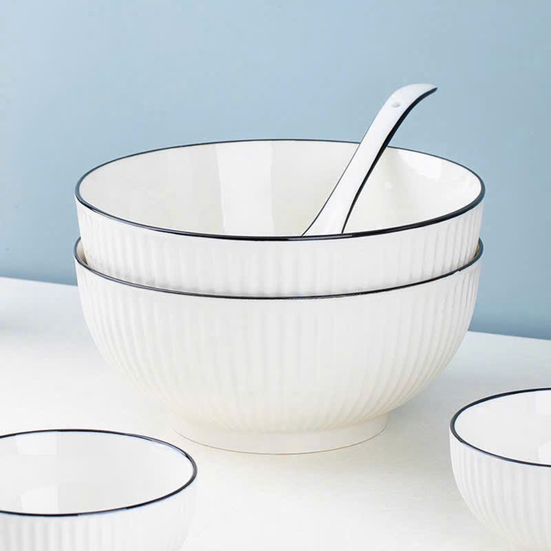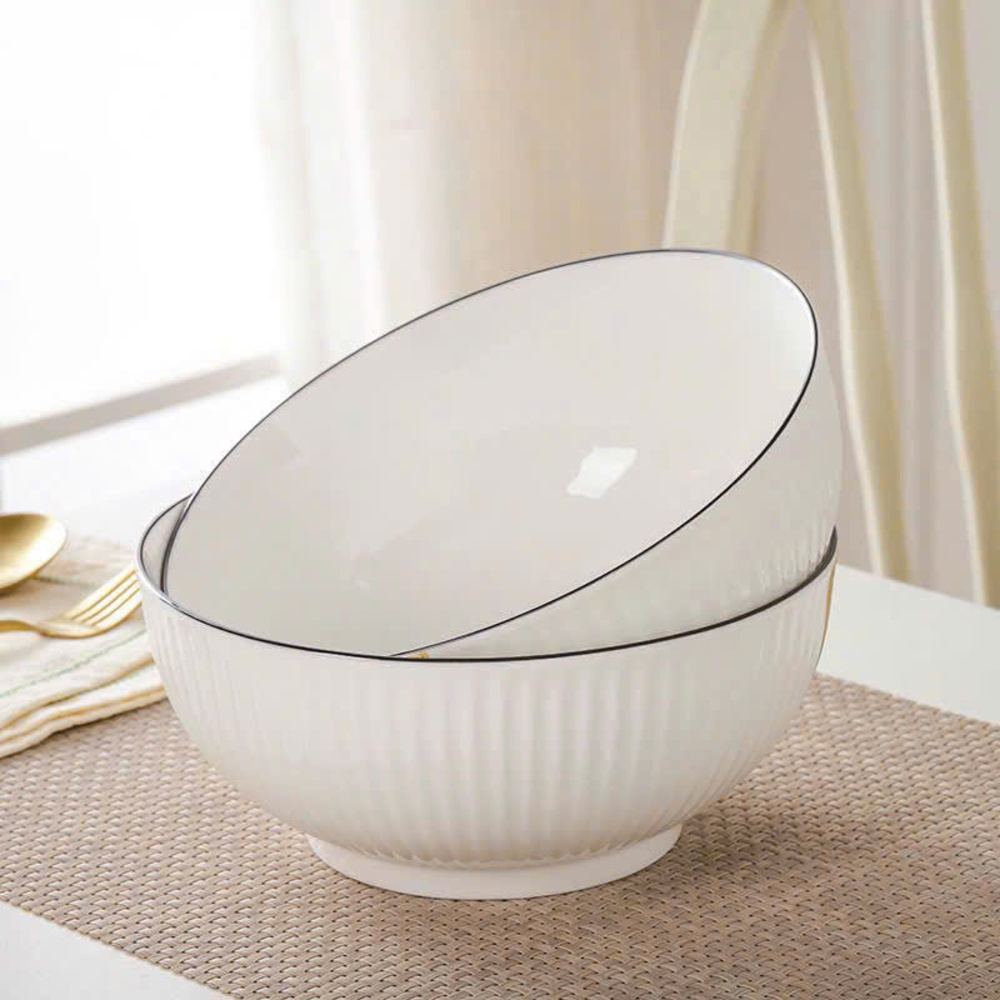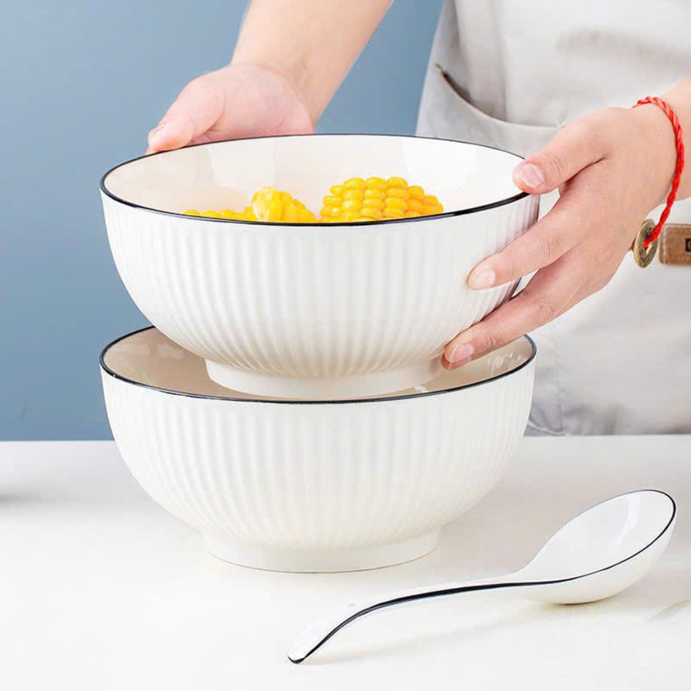 Tô bầu sứ vân sọc trắng viền đen size 20cm (số 8) mang phong cách tối giản hiện đại, phù hợp sử dụng trong gia đình, quán ăn, nhà hàng. Thiết kế lòng sâu, miệng rộng giúp đựng canh, bún, phở, mì hoặc salad tiện lợi, tăng tính thẩm mỹ cho bàn ăn. 🍜✨