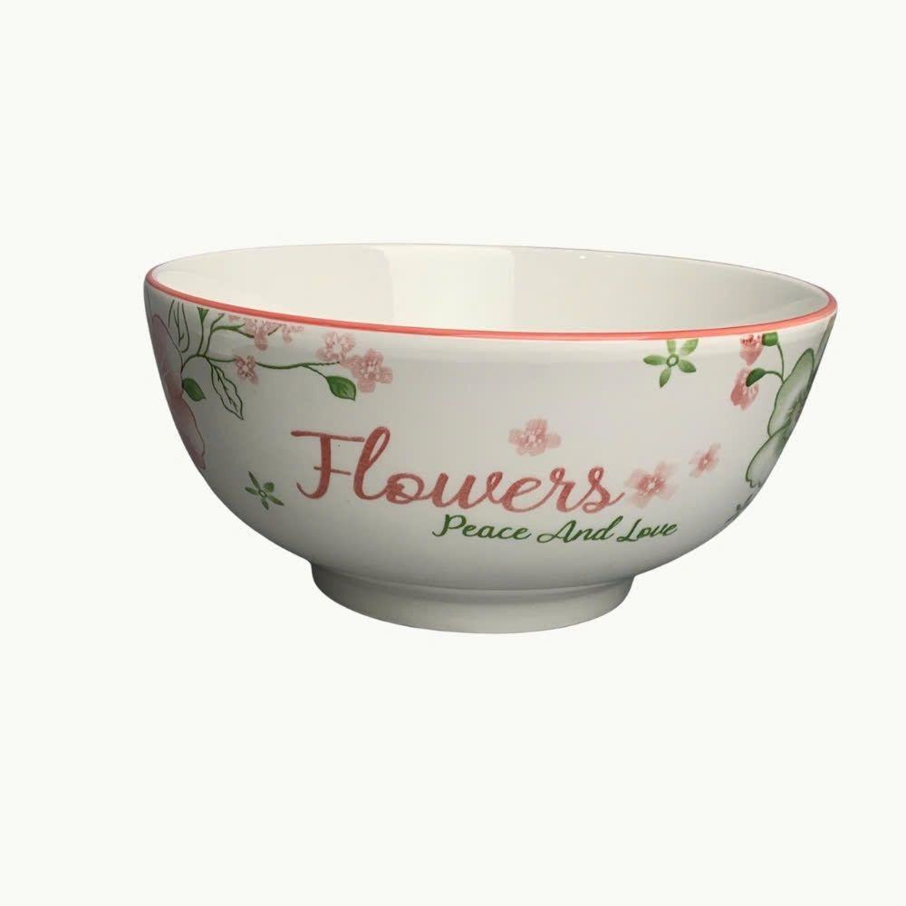 Tô Sứ Trắng Họa Tiết Hoa Viền Hồng Size 8 – Nét Thanh Lịch Cho Mỗi Bữa Cơm Gia Đình