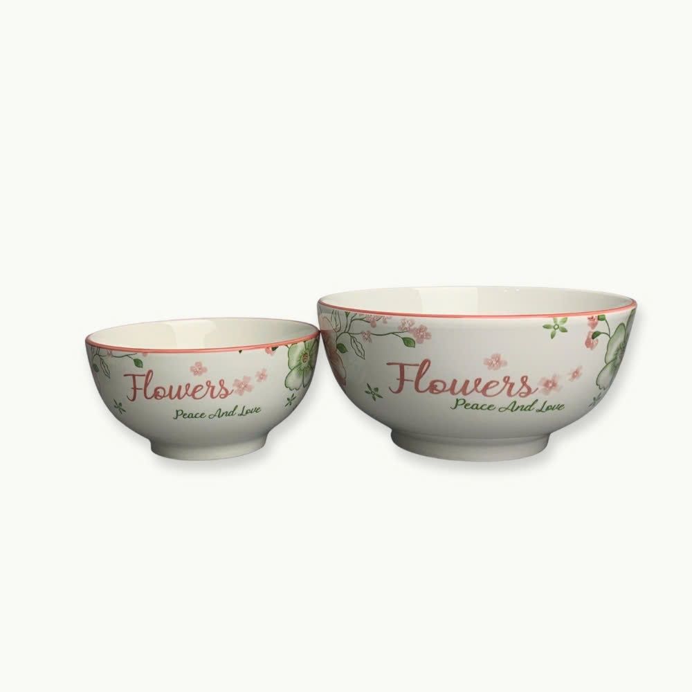 Tô sứ trắng với hoa văn mềm mại và viền hồng nhẹ nhàng tạo cảm giác gần gũi, thanh thoát. Kiểu dáng bo tròn vừa tay, không chỉ mang tính thẩm mỹ cao mà còn giúp dễ dàng xếp chồng, tiết kiệm không gian bếp. -