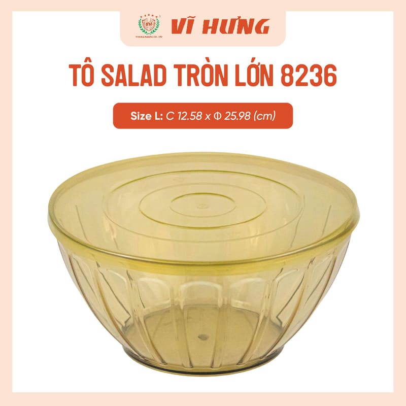 Tô trộn salad tròn nhựa Vĩ Hưng size lớn 4000ml 8235 là lựa chọn lý tưởng cho gia đình đông người hoặc các bữa tiệc nhỏ. Dung tích 4000ml rộng rãi, giúp bạn dễ dàng trộn rau củ, gỏi, bột hoặc đựng thực phẩm lớn mà không lo tràn. Chất liệu nhựa cao cấp, bền chắc, an toàn cho sức khỏe, dễ vệ sinh và sử dụng lâu dài.