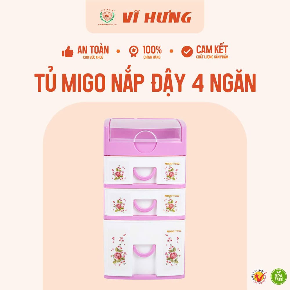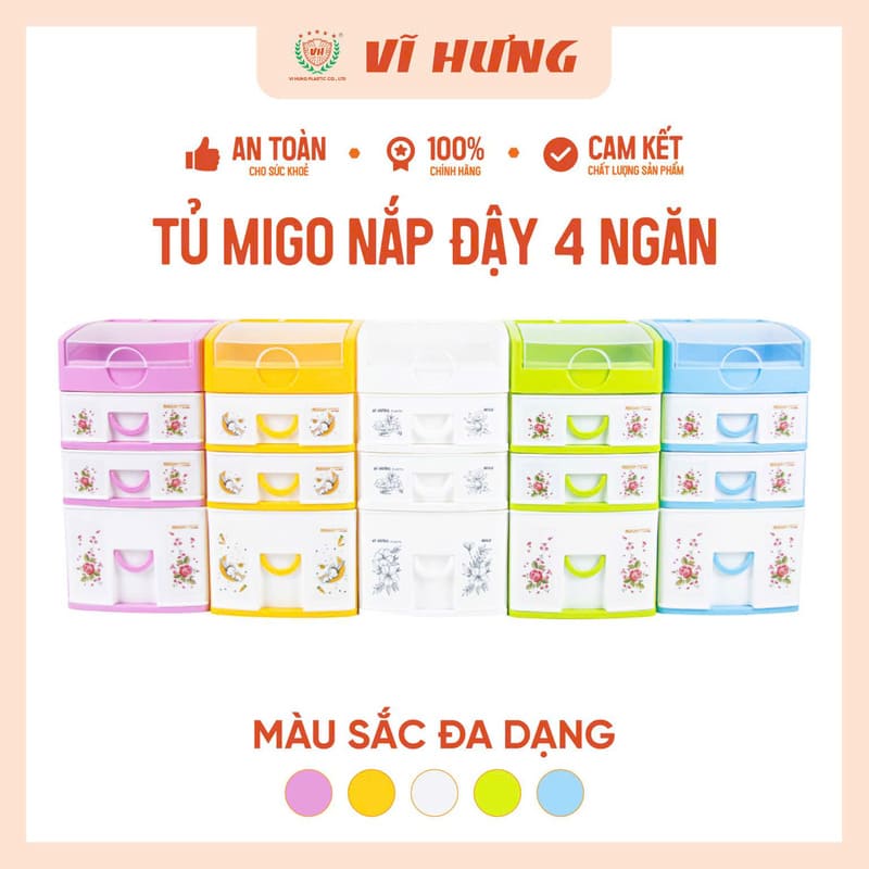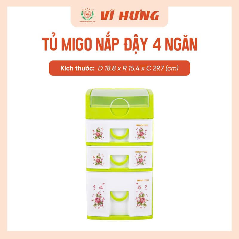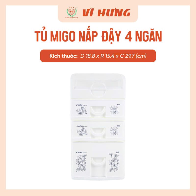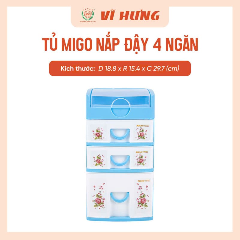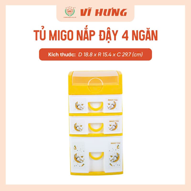 Tủ Migo 4 ngăn VH 9165 là dòng tủ mini để bàn tiện dụng, giúp sắp xếp đồ cá nhân gọn gàng và ngăn nắp. Thiết kế nhỏ gọn kèm nắp đậy chống bụi, phù hợp đặt trên bàn học, bàn làm việc hoặc kệ tủ.